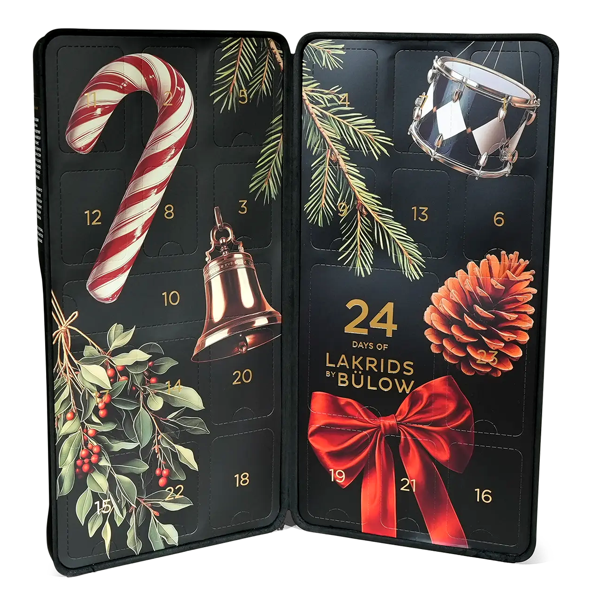 Zähle die Tage bis Weihnachten auf die wohl köstlichste Art – mit dem LARGE ADVENT CALENDAR von LAKRIDS BY BÜLOW. Hinter jedem der 24 Türchen warten vier himmlische Gourmet-Lakritze, liebevoll umhüllt von feiner Schokolade. Eine kuratierte Mischung aus zeitlosen Klassikern und neuen, exklusiven Geschmackskreationen sorgt Tag für Tag für einzigartige Genussmomente. Das ikonische Design, inspiriert von den berühmten Lakritzdosen der Marke, macht den Kalender auch optisch zu einem Highlight. Ob als Geschenk oder zum Selbstverwöhnen – dieser Adventskalender verwandelt jeden Dezembertag in ein kleines Fest des Geschmacks. Natürlich glutenfrei, ohne Gelatine und in Dänemark hergestellt – nordischer Luxus für alle Sinne.