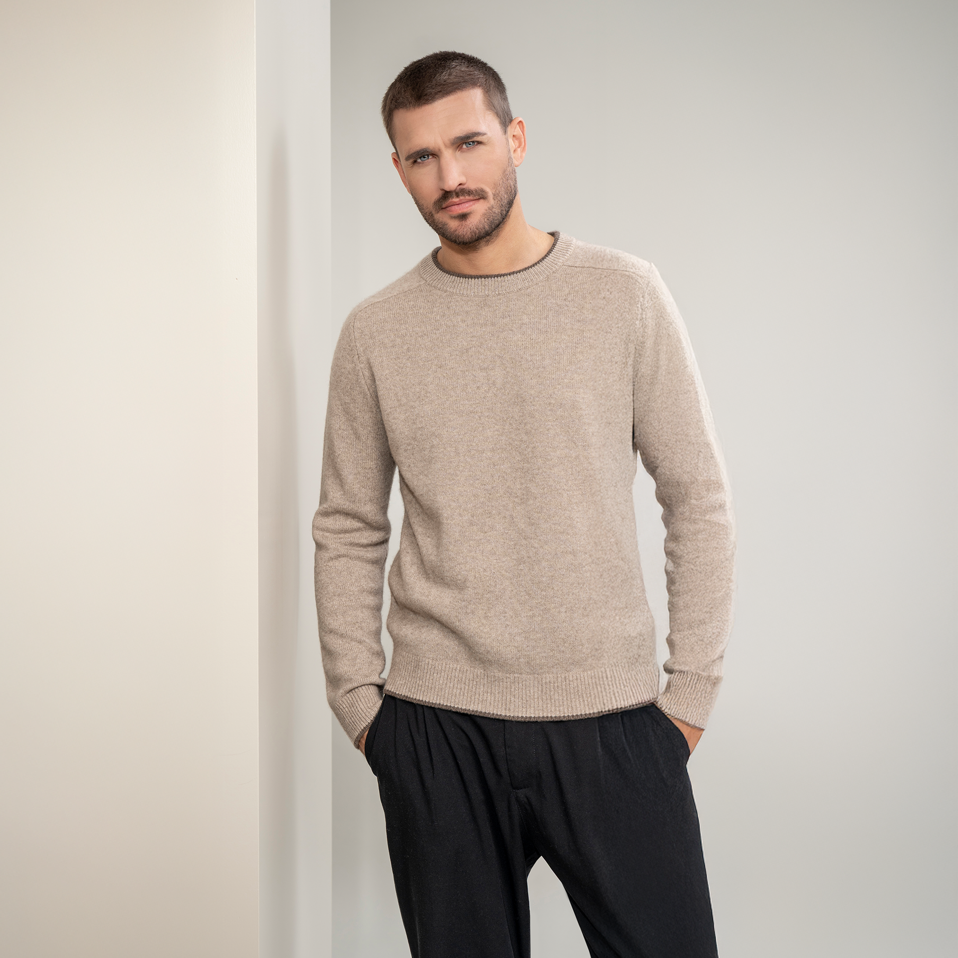 Cashmere Rundhals-Pullover Basic | IRISH CREAM MELANGE