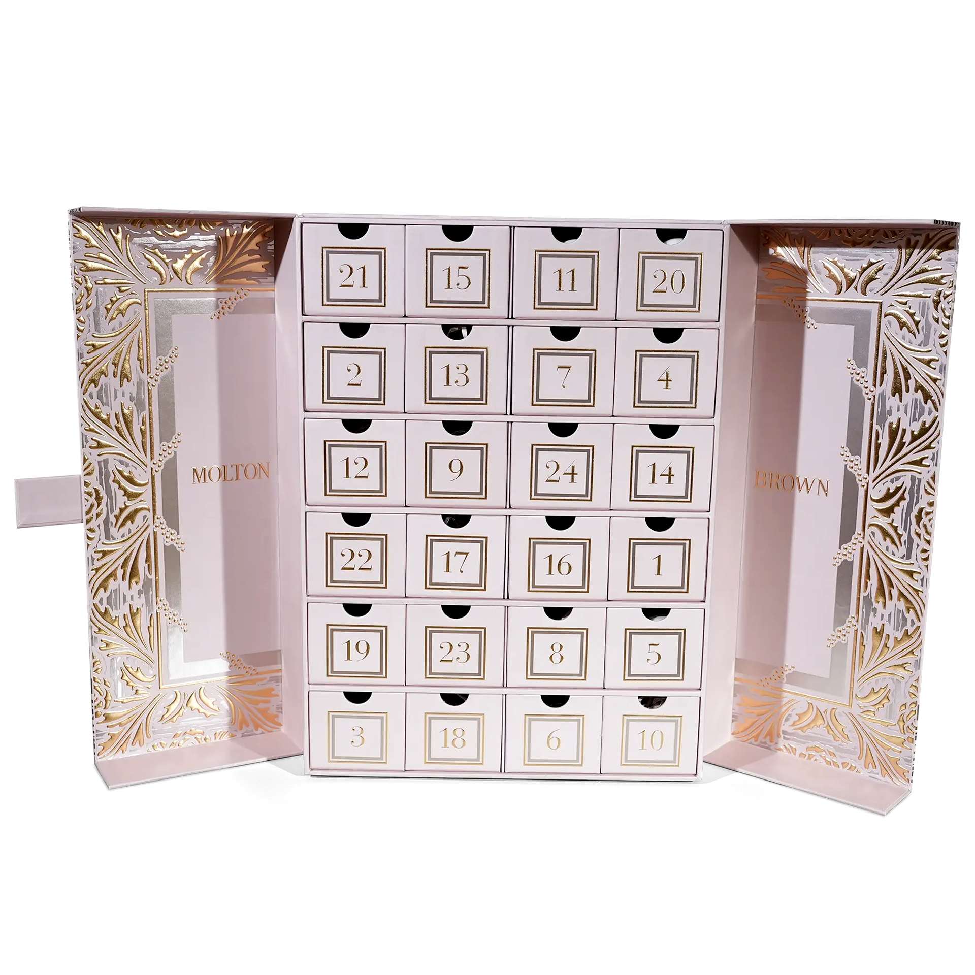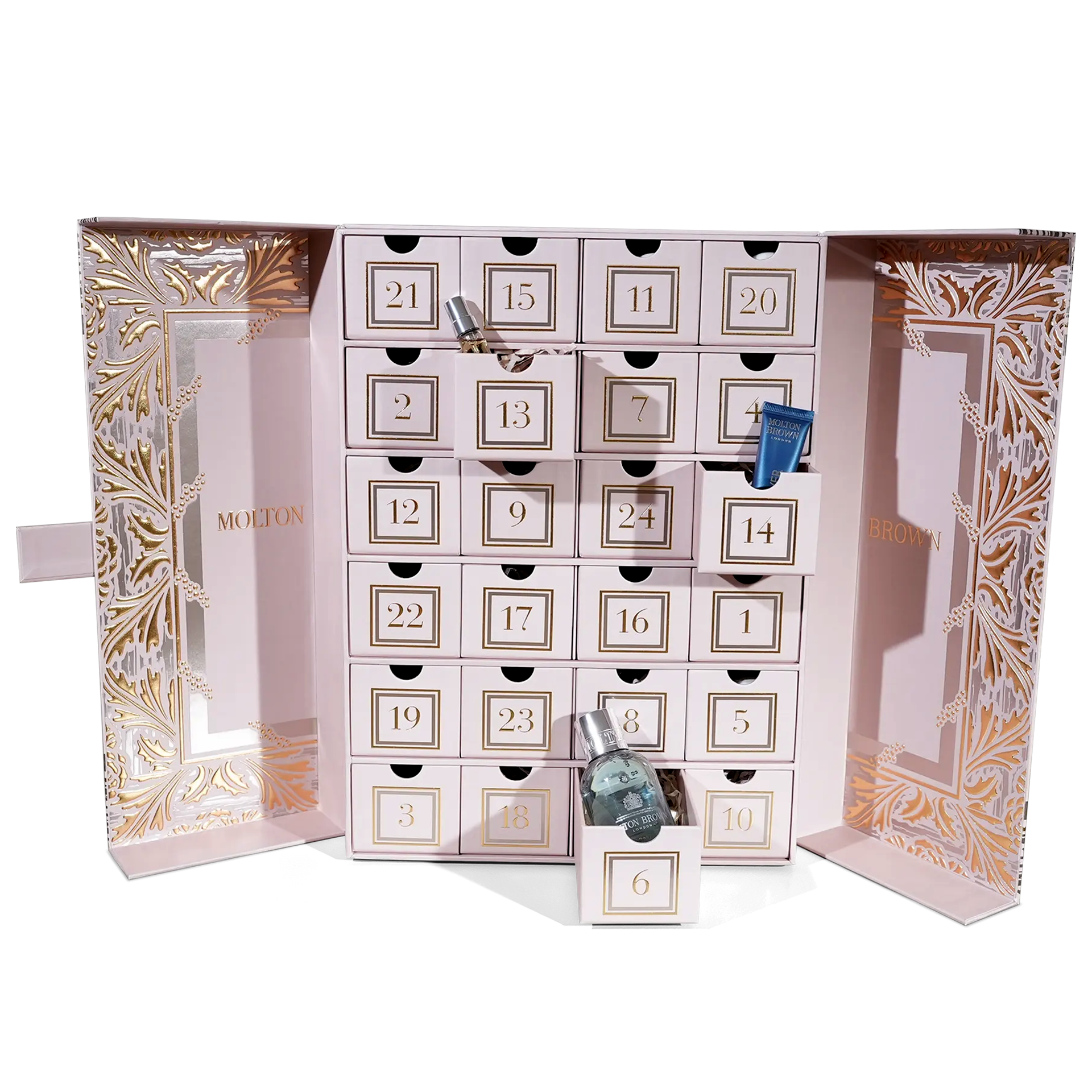 Tauche in die luxuriöse Duftwelt von MOLTON BROWN ein – mit dem exklusiven Adventskalender 2025, der dich 24 Tage lang mit edlen Pflege- und Duftmomenten verwöhnt. Hinter jedem Türchen verbirgt sich ein liebevoll kuratiertes Highlight: sinnliche Bade- und Duschgele, elegante Handcremes, wundervolle Parfums und aromatische Duftkerzen – ein Fest für die Sinne. Von Fiery Pink Pepper über Coastal Cypress & Sea Fennel bis hin zu Rose Dunes – jeder Duft erzählt seine eigene Geschichte und entführt dich in eine Welt voller Eleganz und Raffinesse. Die stilvolle Box mit goldglänzenden Akzenten macht den Kalender zum Highlight jeder Adventszeit – und zum perfekten Geschenk für alle, die sich oder andere mit luxuriöser Pflege verwöhnen möchten.