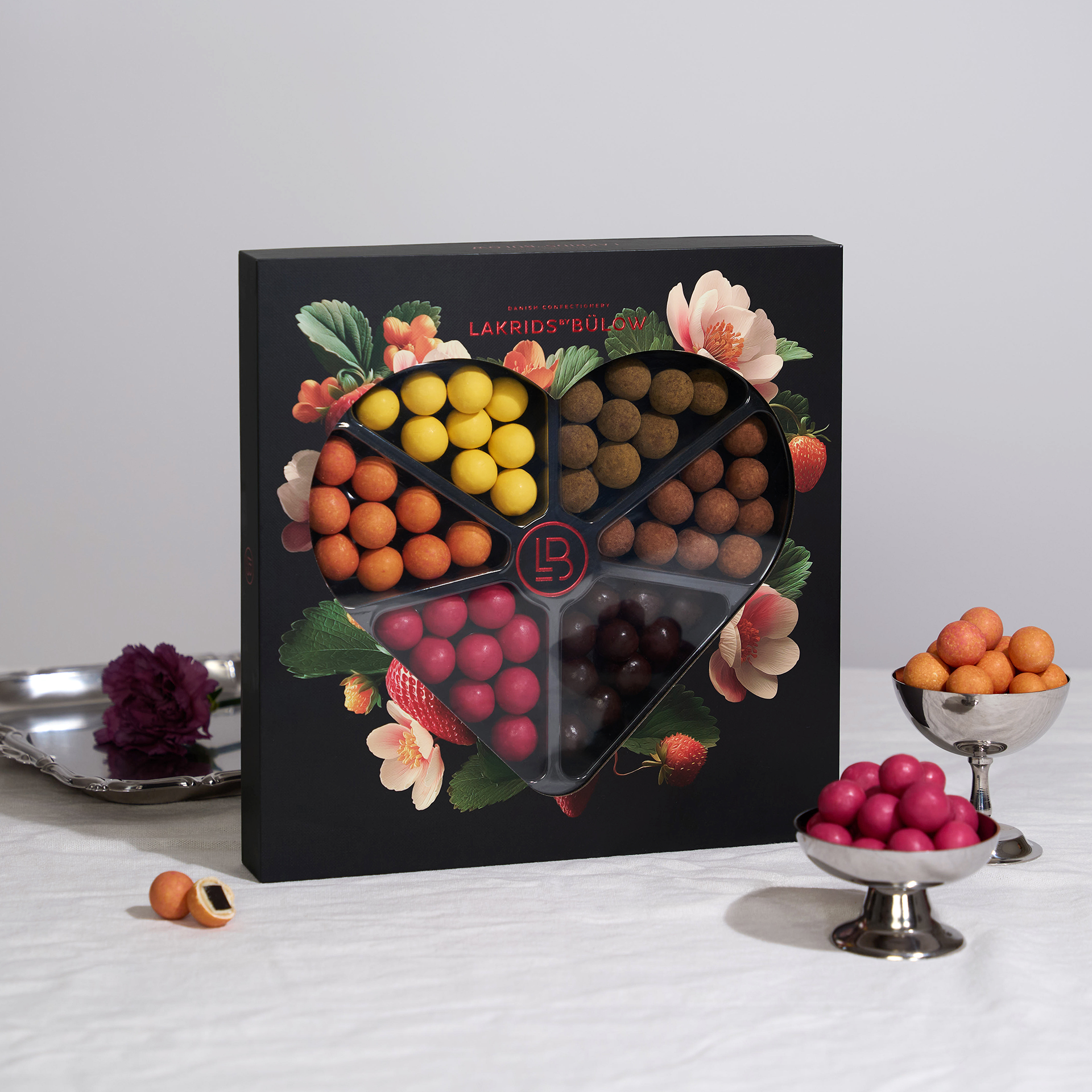 Feiere alle herzförmigen Momente mit einer köstlichen Auswahl, die alles enthält, was das Herz begehrt. Diese Auswahl in Herzform eignet sich hervorragend zum Verschenken und enthält sowohl beliebte Klassiker als auch limitierte Editionen: B - PASSION FRUIT, PEACHES, STRAWBERRIES & CREAM, A - THE ORIGINAL, D - SALT & CARAMEL, F - DARK & SEA SALT und CLASSIC CARAMEL. Es ist die perfekte Möglichkeit, jemandem Liebe und Fürsorge auszudrücken.