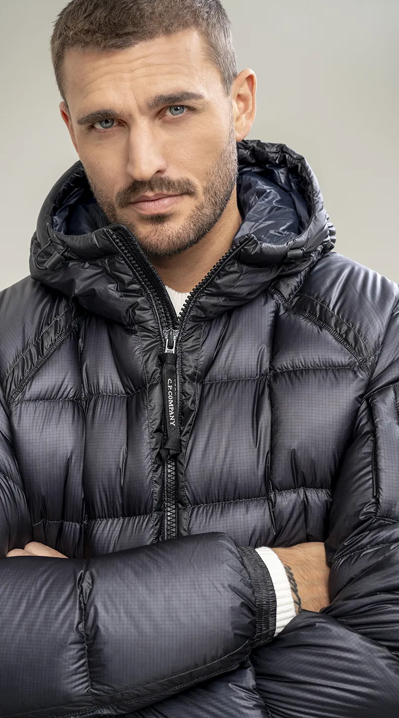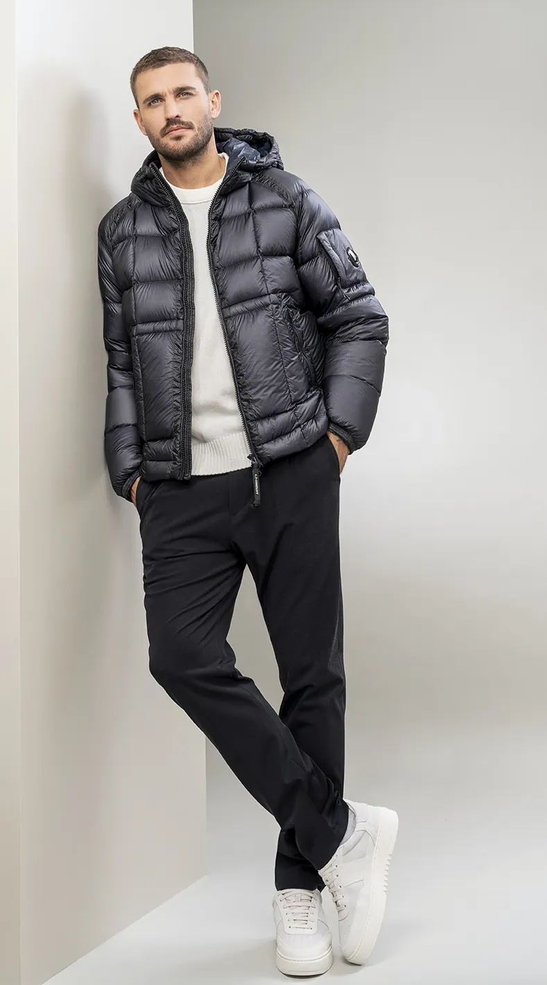 Active Layers kombiniert den schwarzen Puffer von C.P. COMPANY mit cleanem Pullover und Sneakern von AXEL ARIGATO – sportlich, modern und perfekt für die City.