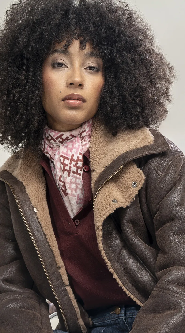 Vintage Aviator bringt ikonischen 70er-Spirit in die Gegenwart. Die ARMA Lederjacke mit kuscheligem Fellfutter sorgt für markante Silhouette, kombiniert mit dem COPENHAGEN MUSE Pullover in warmem Bordeaux. Ein edles HEMISPHERE Cashmere-Tuch setzt Akzente, während die ausgestellte SEDUCTIVE Jeans zeitlosen Denim-Charakter hineinbringt. Die robusten Bootsschuhe von COPENHAGEN STUDIOS runden das Outfit ab.