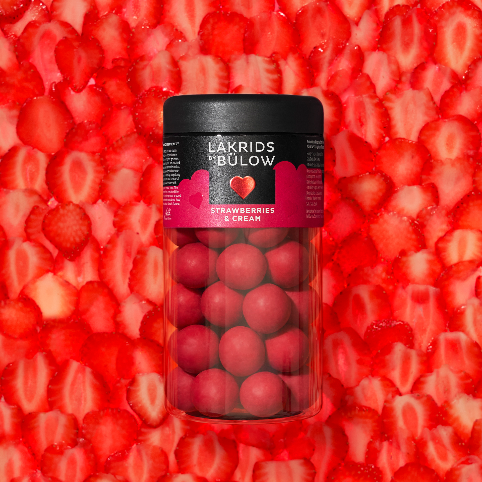 STRAWBERRIES & CREAM ist eine harmonische Komposition aus zartem Lakritz, fruchtiger Erdbeere und feiner weißer Schokolade. Im Kern wartet das charakteristische, süße Lakritz, umhüllt von einer cremigen Schicht weißer Schokolade, die mit natürlichen Erdbeer- und Sahnenoten veredelt ist. Fruchtige Erdbeerstückchen sorgen für eine leichte Frische und einen spannenden Kontrast zur samtigen Schokolade. Abgerundet wird das Geschmackserlebnis durch eine feine Zuckerhülle, die jeden Bissen perfekt ausbalanciert – süß, weich und luxuriös zugleich.