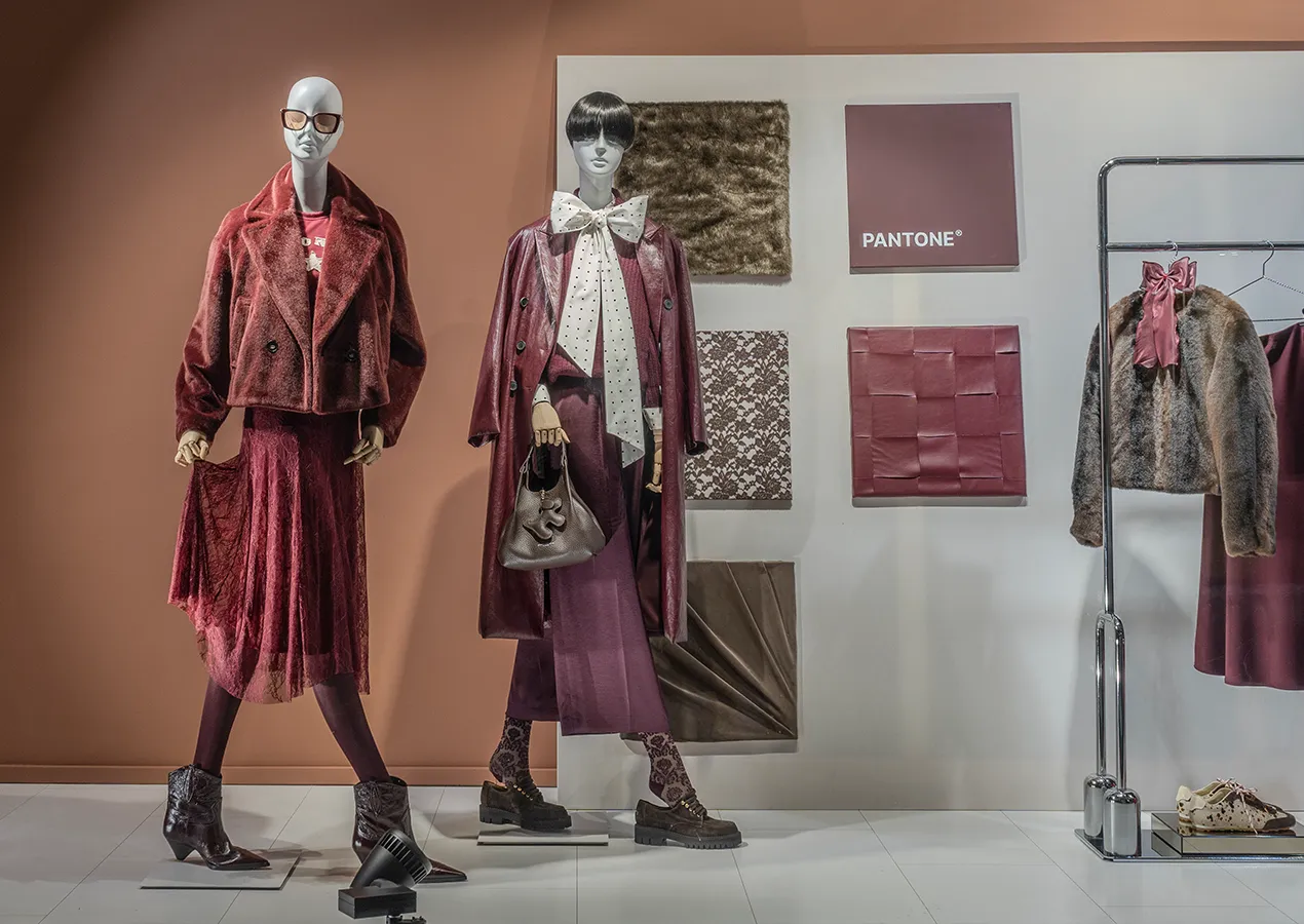 Materialstärke und Klarheit im Bild: Mocha-Mousse-Töne, edle Holz-Anmutungen, Stricktexturen und reduzierte Settings rahmen die Looks. Das Ergebnis ist eine ruhige, hochwertige Bildsprache, die die Saisonfarben und Key-Pieces eindrucksvoll transportiert.