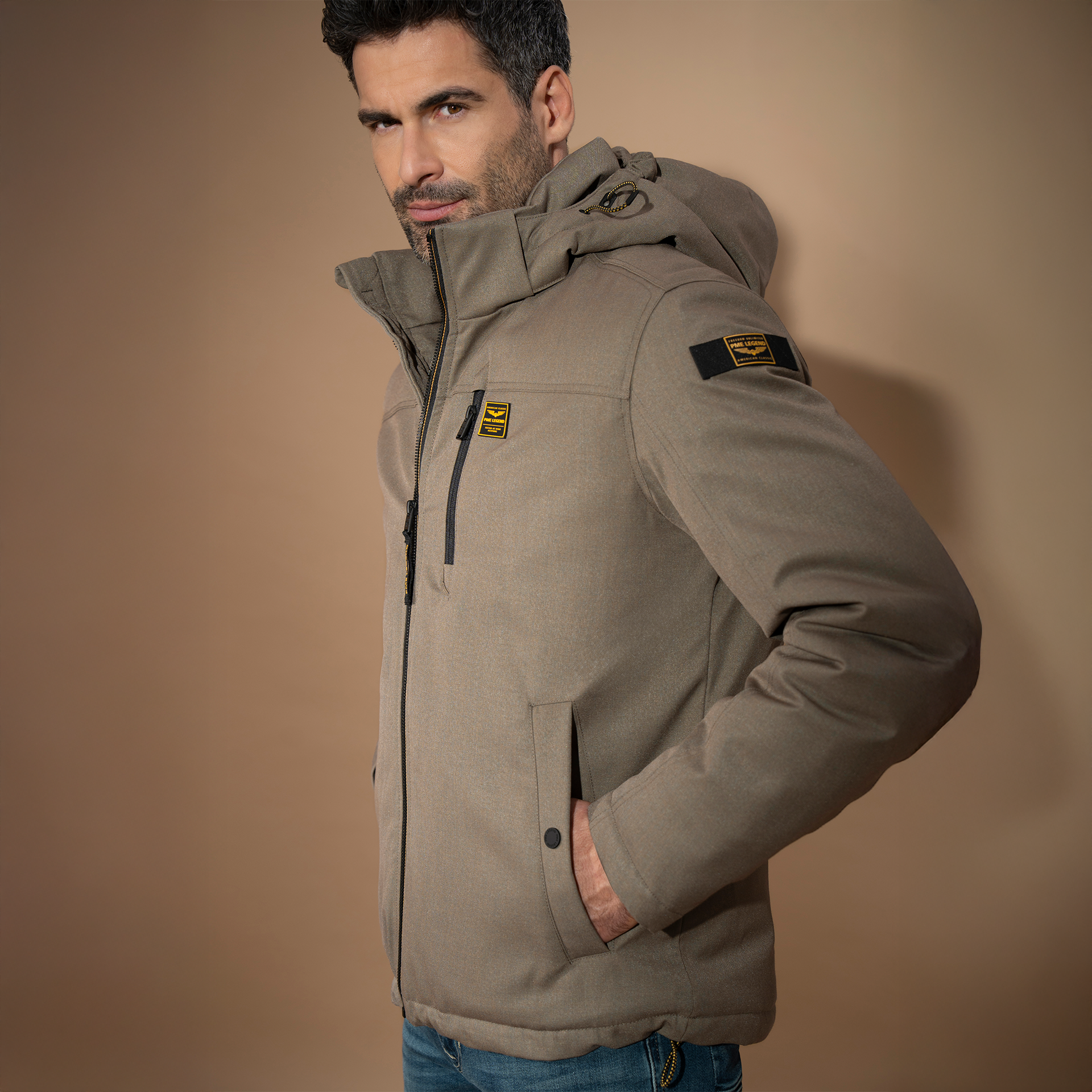 Mit der PME LEGEND STRATOR Jacke in Beige bist du für jede Wetterlage gerüstet. Das markante Design trifft auf funktionale Details: Der hohe Stehkragen und die abnehmbare, verstellbare Kapuze schützen dich zuverlässig vor Wind und Kälte, während der durchgehende Reißverschluss mit Windfang Wärme speichert. Die mittellange Passform sorgt für einen modernen, maskulinen Look und bietet dir gleichzeitig Bewegungsfreiheit und Komfort. Typisch PME Legend: robuste Materialien, klare Linien und ein authentischer Stil, der Charakter zeigt.