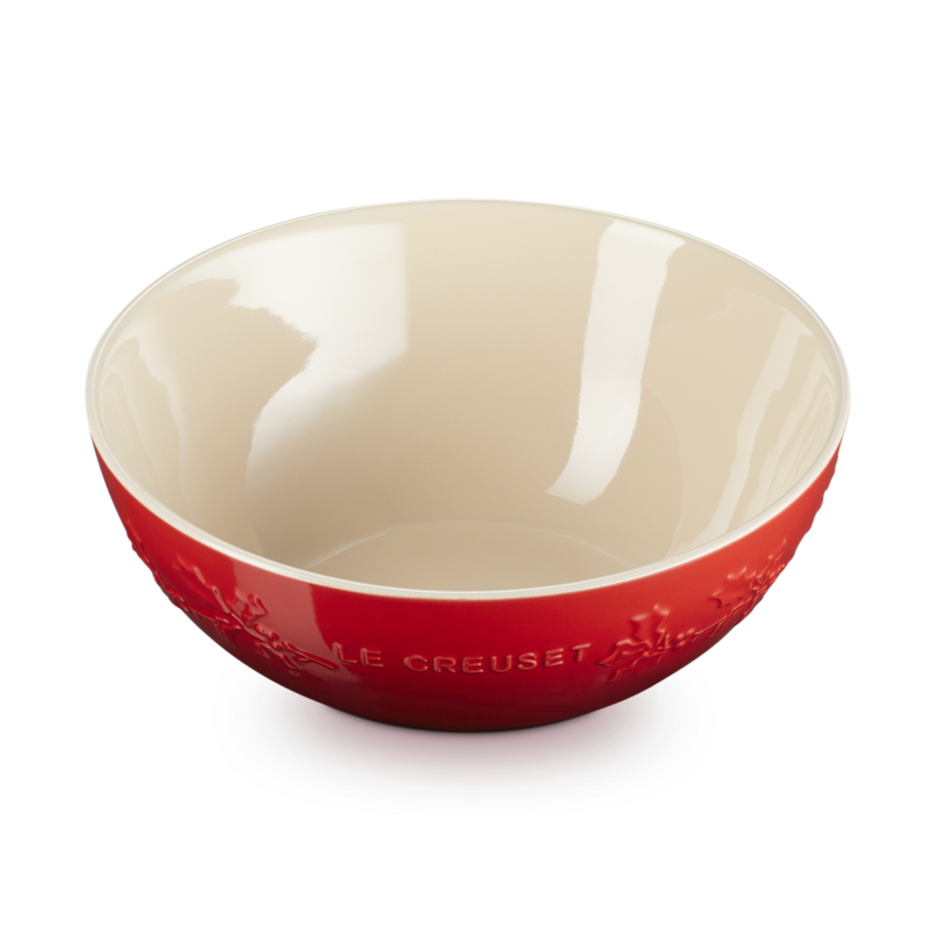 Die Holly Servierschüssel von LE CREUSET in der ausdrucksstarken Farbe Kirschrot ist ein echtes Highlight für jede Festtafel und jedes stilvolle Zuhause. Mit ihrem einzigartigen Holly-Relief, ihrer harmonischen Form und dem ikonischen, tiefen Rotton bringt sie Wärme, Eleganz und eine feine Note weihnachtlicher Freude in deine Küche. Gefertigt aus hochwertigem Steinzeug, überzeugt die Schüssel durch außergewöhnliche Haltbarkeit, eine glatte, schnittfeste Glasur und hervorragende Wärmeeigenschaften. Ob für Salate, Pasta, Gebäck oder winterliche Lieblingsgerichte – die Holly-Schüssel ist ein vielseitiges Essential, das jede Mahlzeit optisch veredelt. Die kirschrote Glasur verleiht dem Design eine moderne Leuchtkraft und zeitlose Schönheit.