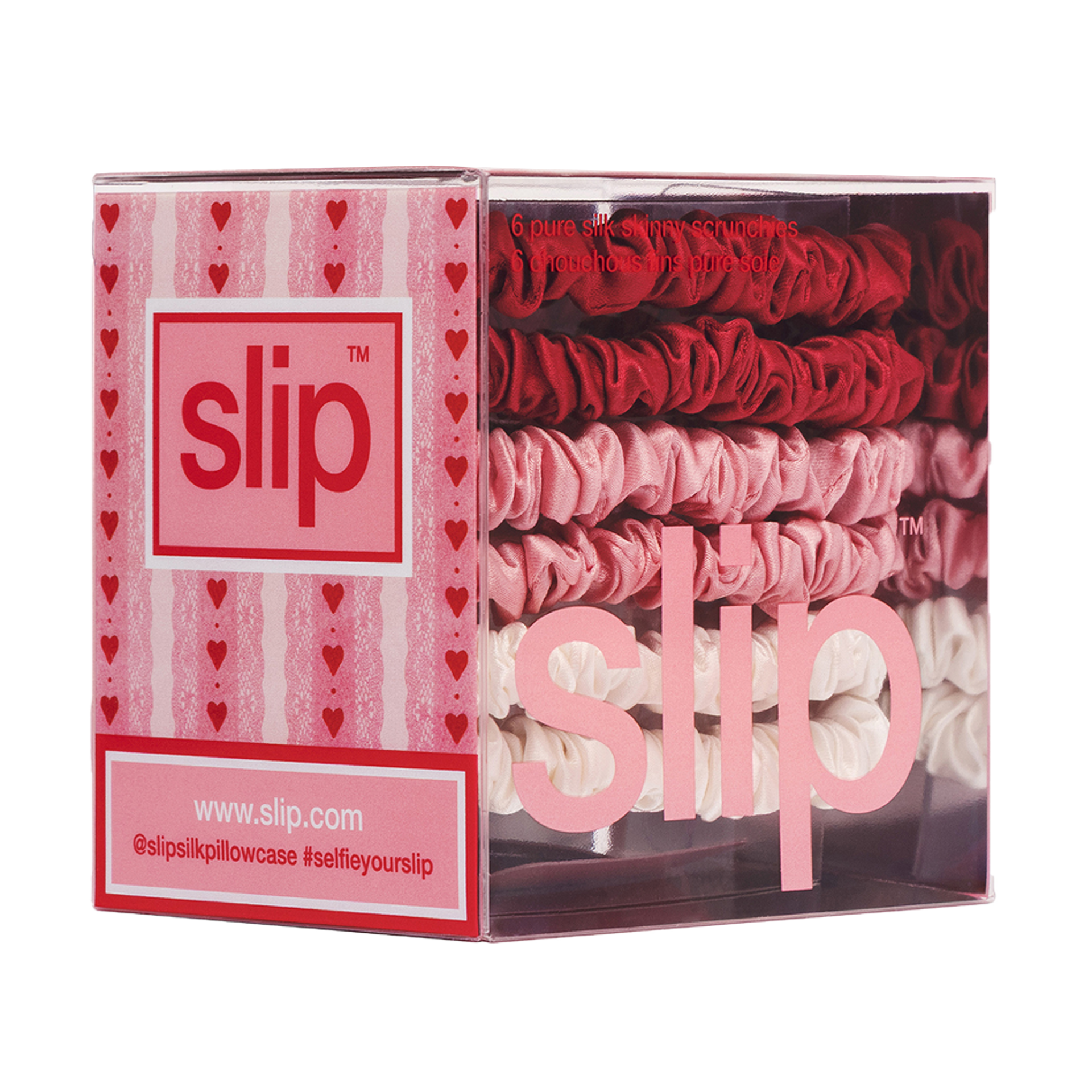 Die SLIP Sweetie Skinny Scrunchies sind das perfekte Valentinstags-Accessoire für alle, die ihrem Haar und sich selbst etwas Besonderes schenken möchten. Gefertigt aus original SLIP Pure Silk, bieten diese feinen Haargummis maximalen Halt bei minimaler Belastung – ganz ohne Ziehen, Knicken oder Haarbruch.