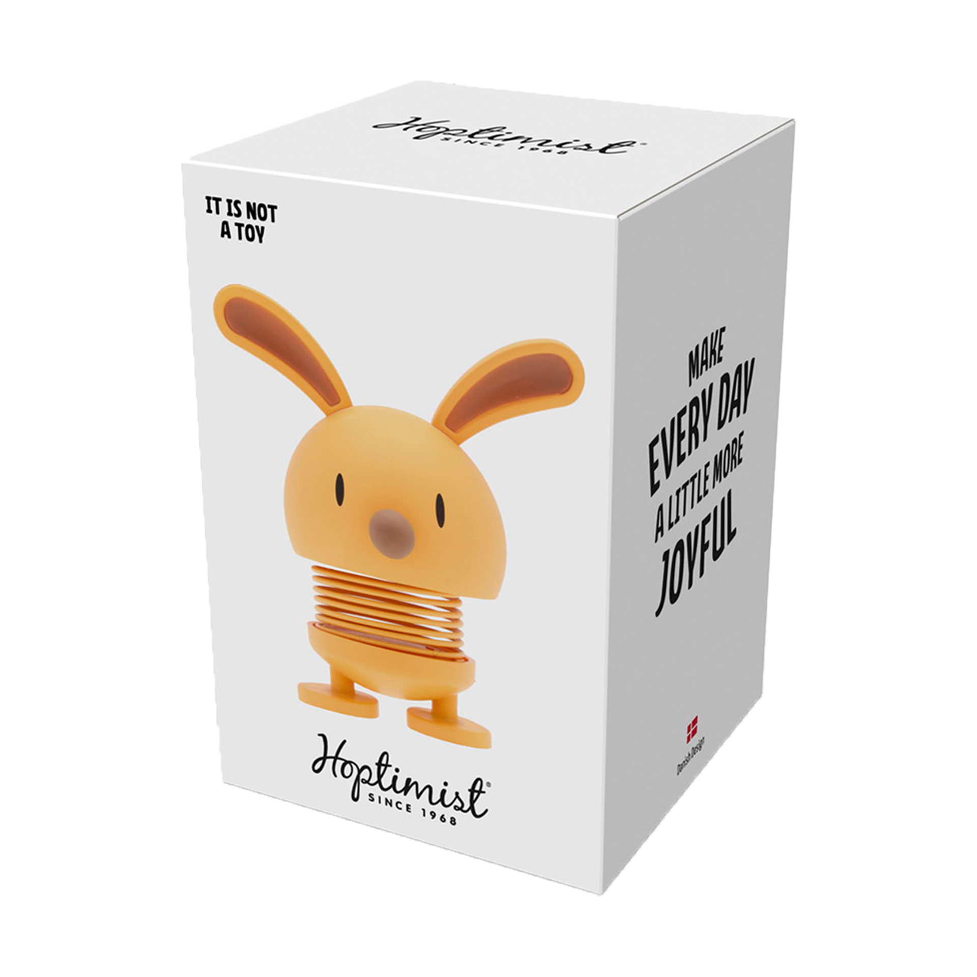 Typisch Hoptimist sorgt auch dieser kleine Bunny mit seiner federnden Bewegung für ein spielerisches Wippen – ein liebevolles Detail, das sofort ein Lächeln zaubert. Die weiche Haptik verleiht dem Design eine besondere Gemütlichkeit und macht ihn zu einem charmanten Begleiter, nicht nur zur Osterzeit.
