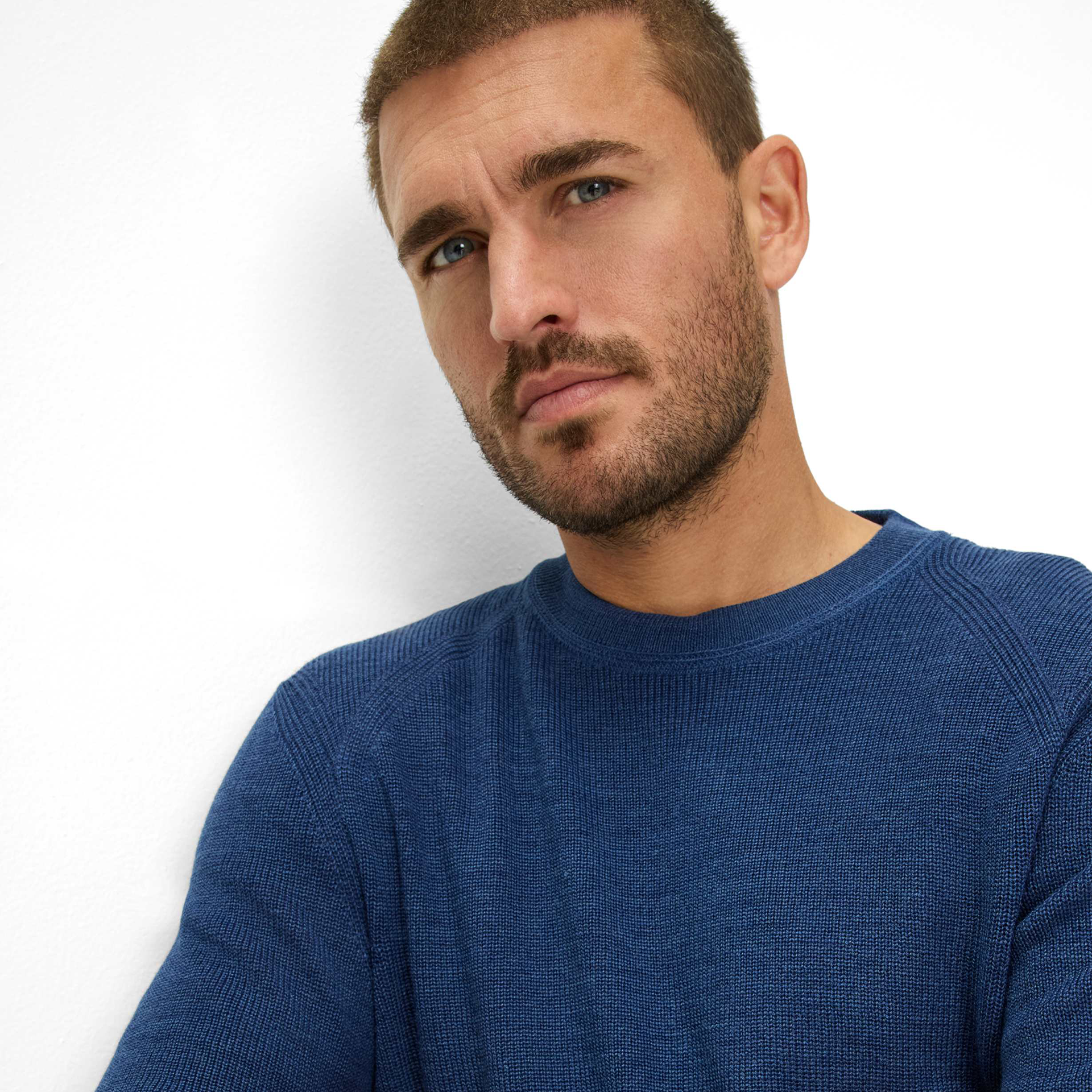 Der BRAX Style Roy überzeugt mit einem klaren Look und einem feinen, melierten Strickbild. Der Materialmix aus Baumwolle, Wolle und Polyacryl sorgt für ein weiches Tragegefühl und angenehme Wärme. Ein klassischer Rundhalsausschnitt und elastische Rippbündchen geben dem Pullover eine gepflegte, sportive Note.