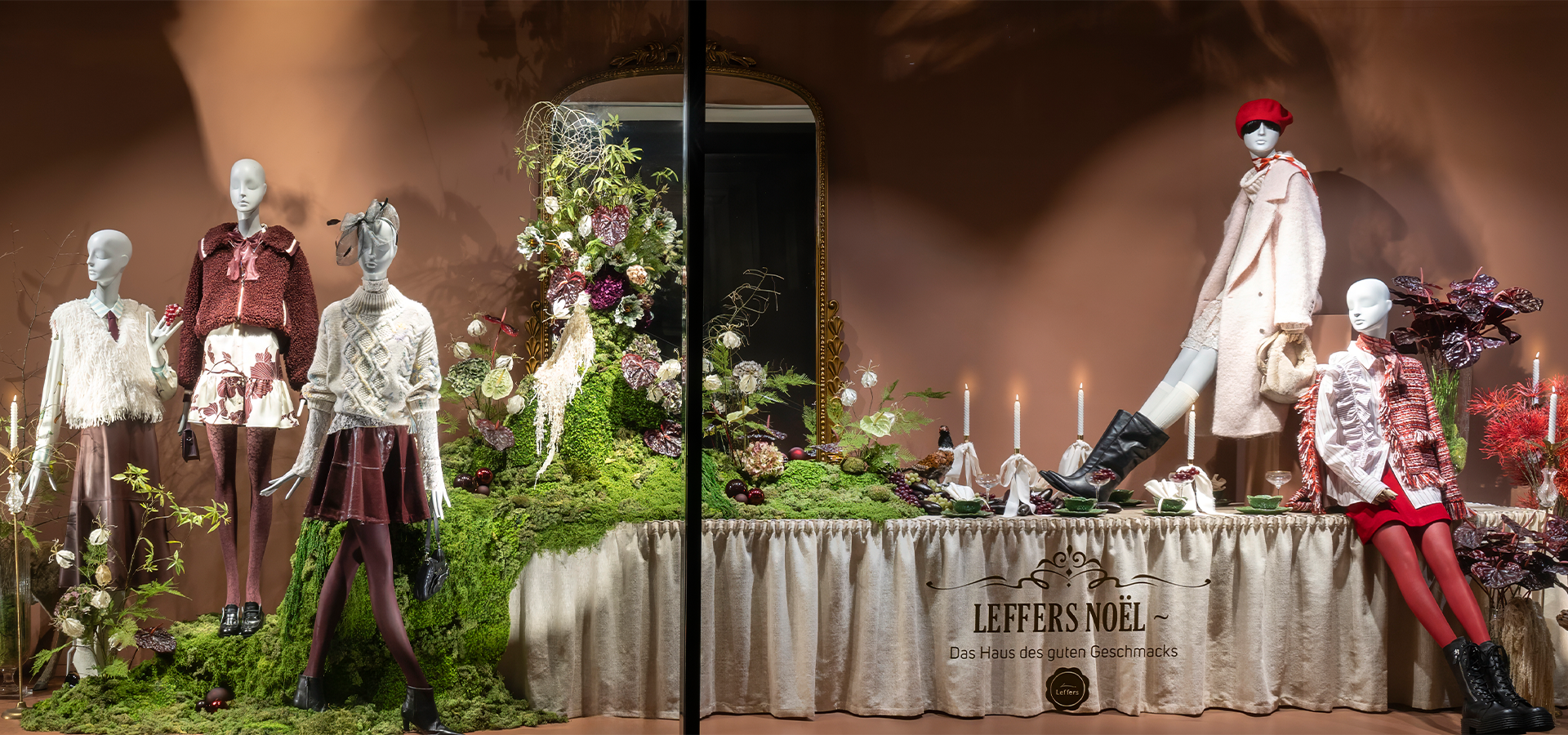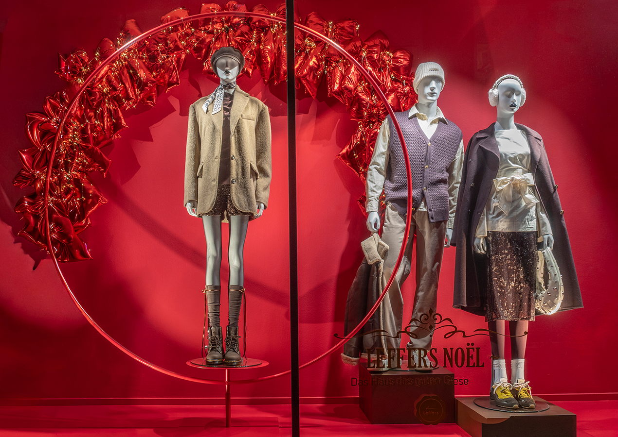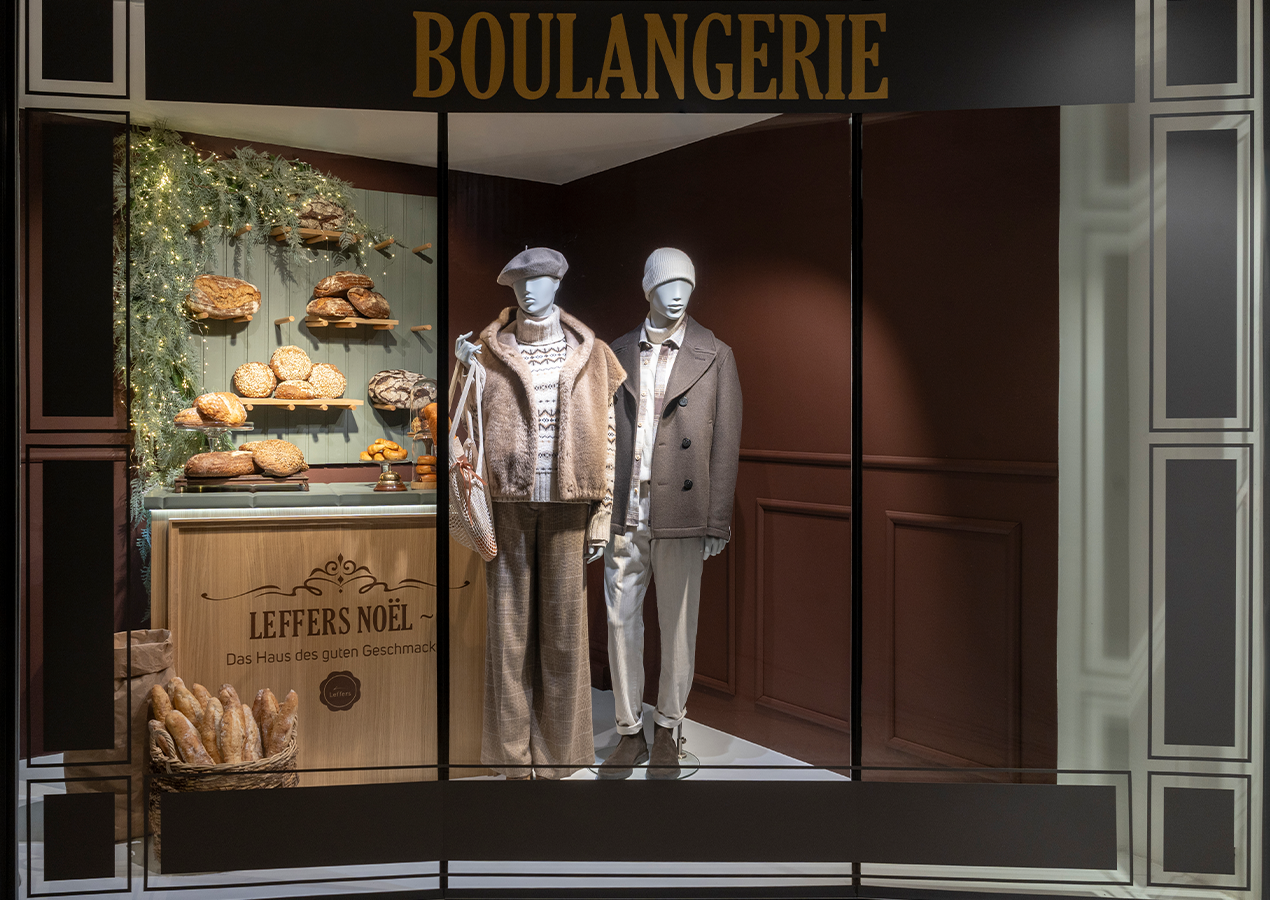 Weihnachten bei Leffers ist wie ein kleiner Ausflug nach Frankreich. Man riecht frisches Brot, feine Schokolade, vielleicht ein bisschen Rotwein – und überall funkeln Lichter, die unsere Schaufenster in kleine französische Geschäfte verwandeln.